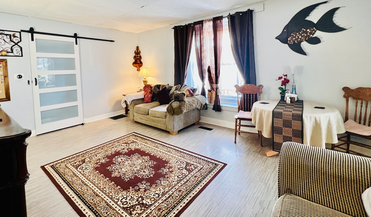 Nuestro apartamento de alquiler vacacional de 322 pies cuadrados está al lado, pero separado de nuestro Twin Gables Inn de dos habitaciones en Skamokawa Creek. Ideal para dos, pero pueden dormir cuatro en un apuro (cama plegable en el salón). El apartamento no da al arroyo, pero está a 30 pies de la puerta trasera hasta el borde del agua. 5 pasos hasta el apartamento. Desayuno disponible en la posada. Solo se admiten perros pequeños con permiso previo. Parque apto para perros, refugio de vida silvestre y recinto ferial cerca.