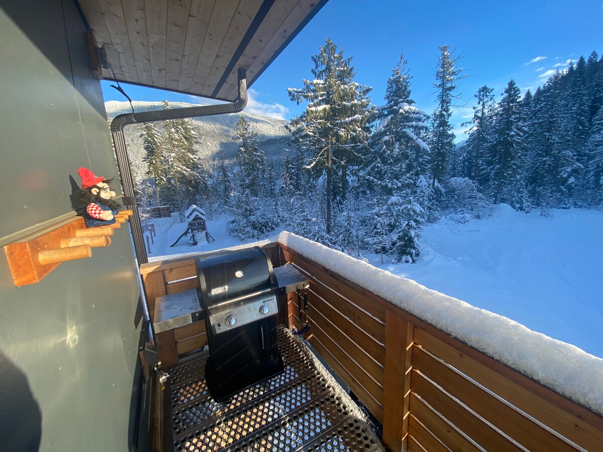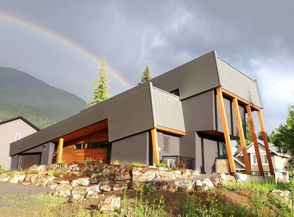 Esta suite privada de nueva construcción se encuentra en la parte trasera de esta moderna casa de montaña con salida a la planta baja, patio privado y entrada independiente. Durante el día disfrutarás de mucha luz natural y vistas increíbles de las montañas. Totalmente equipada, cuenta con cocina completa, comedor y lavandería. Solo tienes que traer tus propios comestibles y te sentirás como en casa. Tan ecléctica como la casa, encontrarás una mezcla de arte original e historia de Revelstoke en esta increíble suite.
