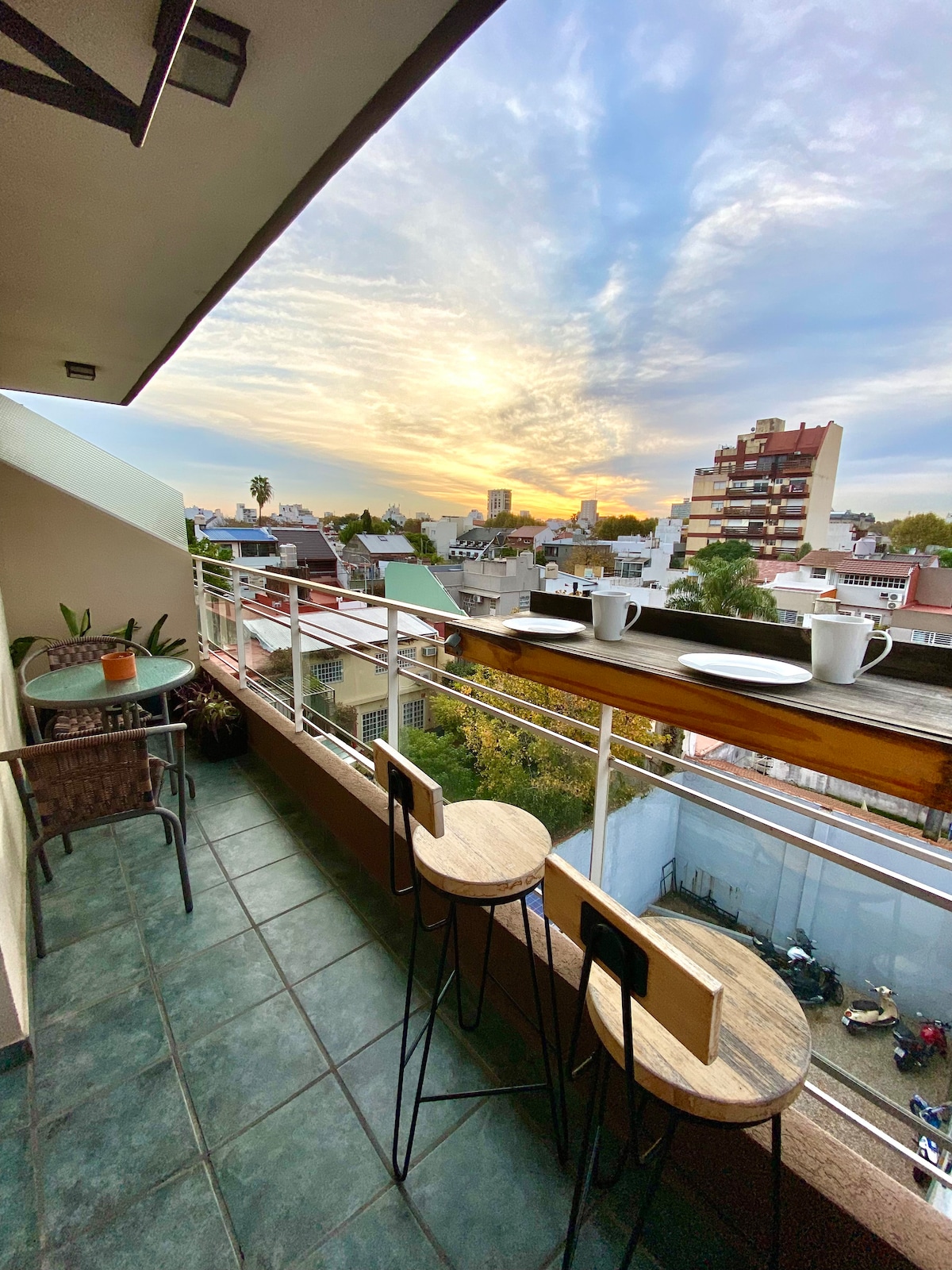 Bienvenidos!!! Les ofrecemos un departamento de 2 ambientes con amplias terrazas y parrillas en un edificio pequeño de 8 viviendas. Nuestro espacio, que se encuentra en 1er piso por escalera, cuenta con lugar para 3 huéspedes con todas las comodidades necesarias para darles una grata estadía. Muy luminoso. Ubicado en un barrio tranquilo, con negocios de todo tipo y cercano a varias avenidas y medios de transporte. Vivimos al lado así que estaremos disponibles para lo que necesiten!