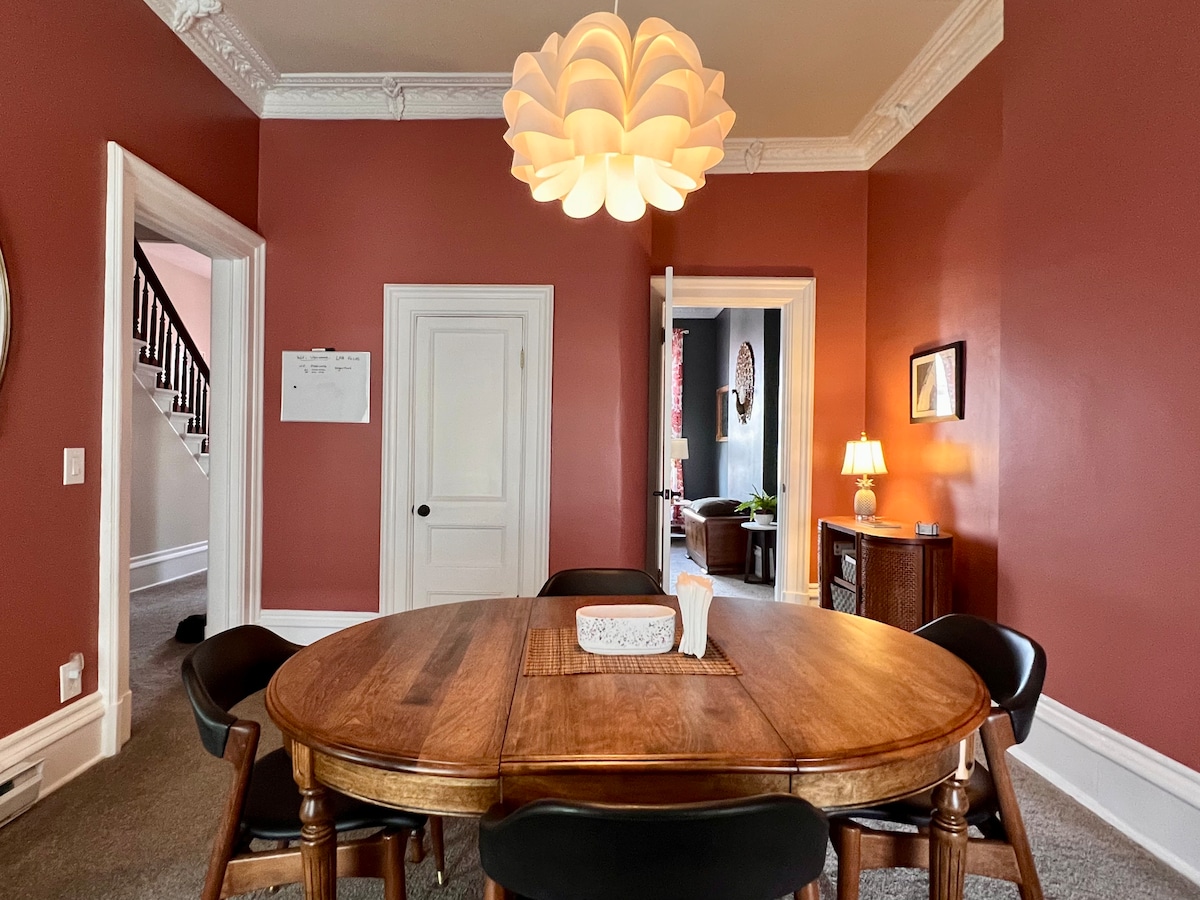 Apartamento de 1 dormitorio en el 1er piso con cocina completa y baño. Cama tamaño queen y sofá cama con capacidad para 4 personas. A poca distancia a pie del centro de Jamestown. Disponible a corto plazo o con descuento semanal/mensual. Se admiten mascotas por una tarifa, consulta «otras notas». Aparcamiento gratuito en la calle. Hay residentes que viven en otros apartamentos del edificio, todos amables y tranquilos. El edificio tiene más de 100 años, por lo que no es moderno ni elegante, solo cómodo y asequible si eso es lo que buscas.