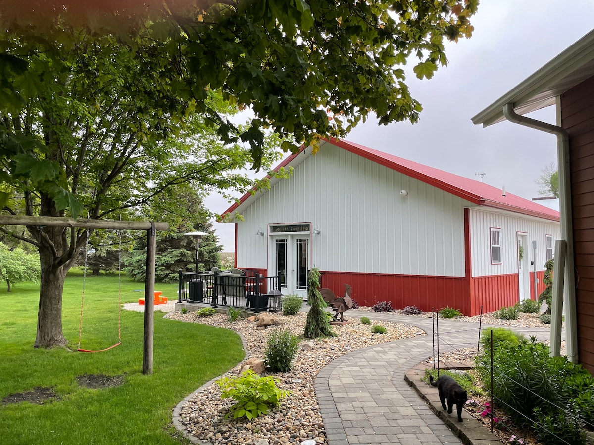 Granero histórico de planta abierta a nivel del suelo convertido en un Airbnb. Toda el área de la cocina nueva construida. Wifi rápido, Iowa State a 10 minutos, Iowa rural pero cerca de Ames. ¡Duerme en un remolque, duerme en un barco! Ambiente súper relajado en 3 acres con porche para disfrutar. Alojamiento de hotel como aire acondicionado, calefacción, sábanas limpias, toallas y café/té, pero estilo camping. El granero es de auto check-in (amigable para llegadas tardías) y check-out. Si solo necesitas 1 noche de domingo a jueves, solo pide una oferta. ¡Amigable con los gays!