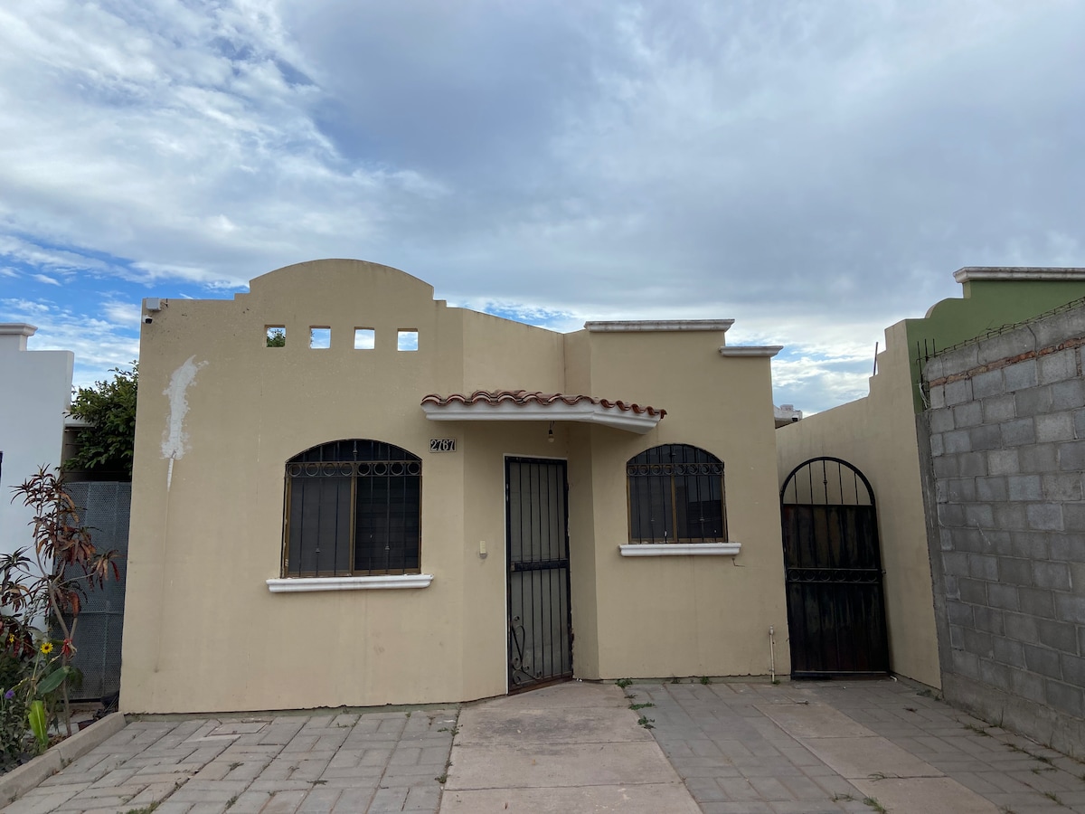 Relájate con toda la familia en este alojamiento donde la tranquilidad se respira. Somos pet friendly. amplio patio con asador y mesa de jardín. En uno de los sectores más seguros de Los Mochis, a sólo media cuadra de un parque recreativo, para que lleves a tus hijos o mascota a pasear, cochera para dos autos con portón eléctrico totalmente refrigerada, cerca de centros comerciales, tiendas de servicios y universidades.