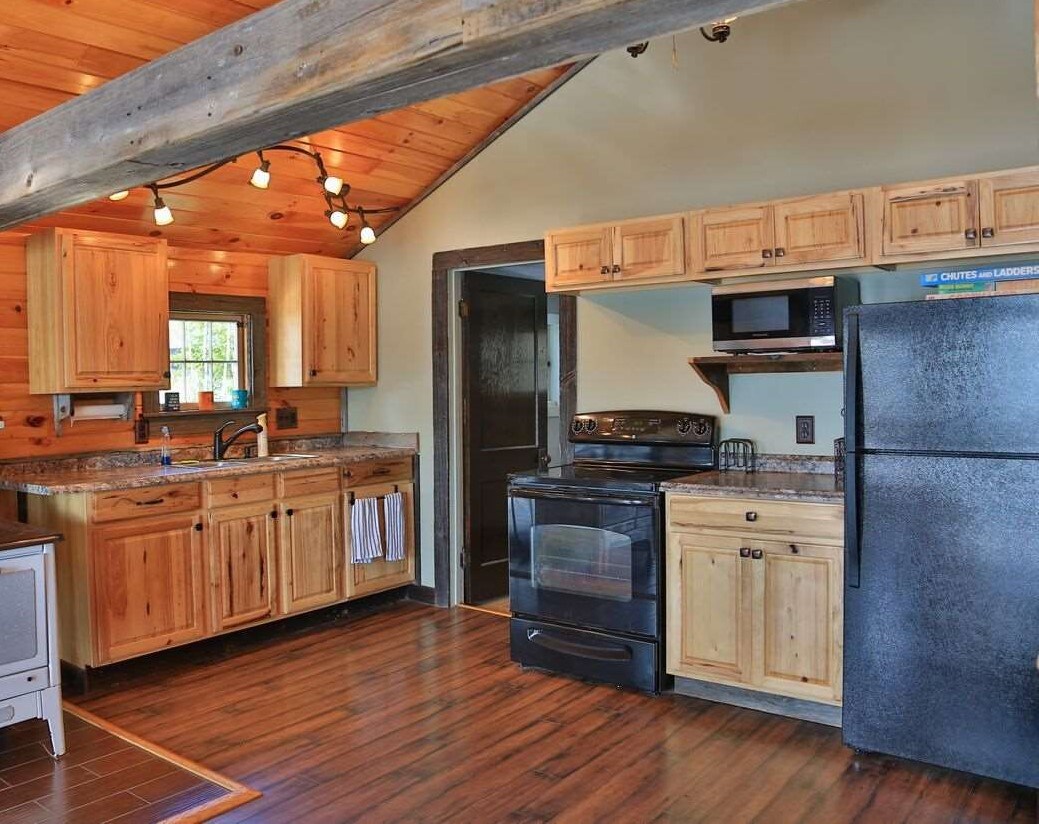 Casa de madera con chimenea exterior personalizada que admite mascotas en Meredith, NH