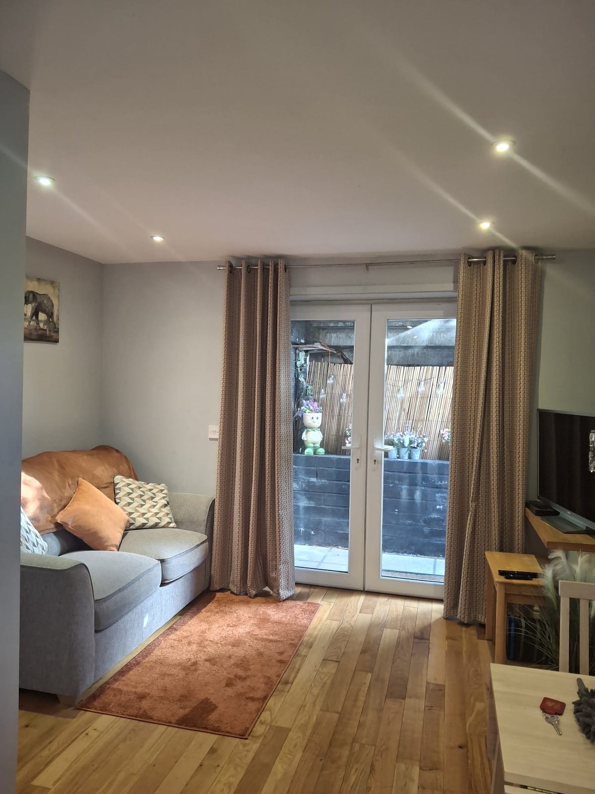 Este espacioso apartamento en el primer piso es ideal para parejas y tiene un gran salón/comedor, cocina separada de tamaño completo y dormitorio con baño con ducha. El apartamento es uno de los cinco apartamentos de nuestra casa familiar, nosotros ocupamos dos y los dos restantes son alquileres a largo plazo con un solo inquilino en cada uno, y en general somos un hogar tranquilo.