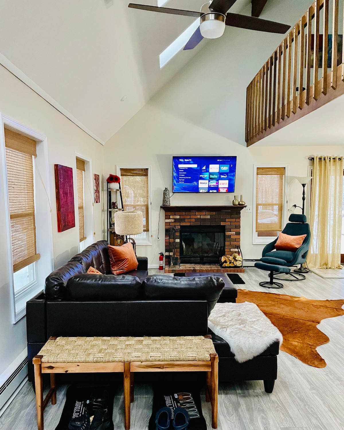 Esta casa moderna recientemente renovada ofrece un refugio rejuvenecedor de todo el estrés de la ciudad. Disfruta del entorno natural en un terreno privado de un acre mientras estás en un espacio que ofrece todas las comodidades para que tus vacaciones sean libres de preocupaciones. La gran sala de estar de concepto abierto cuenta con luz solar mientras disfrutas de las vistas del bosque. Nuestro loft de concepto abierto ofrece un ambiente relajante para jugar con familiares y amigos.