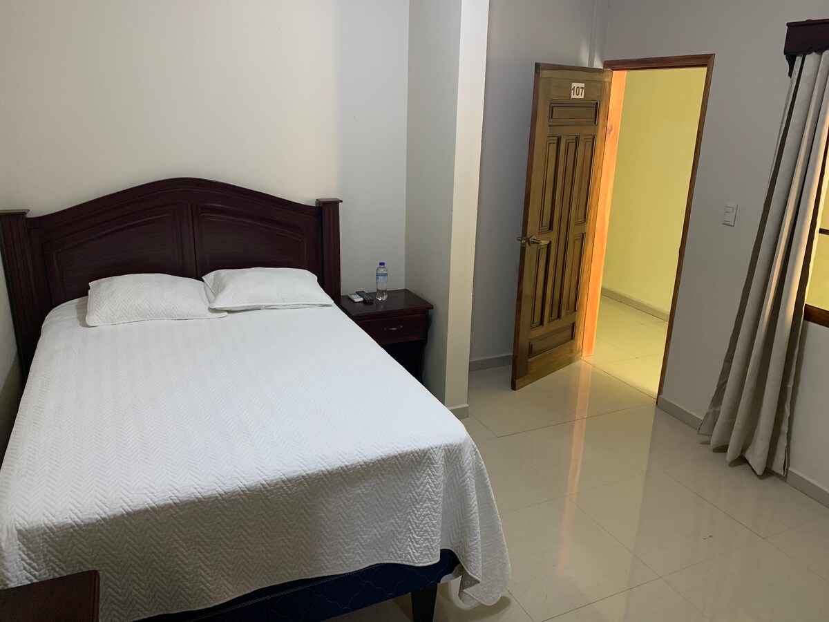 Disfruta de una estancia cómoda y tranquila en nuestra habitación sencilla con ventilador, ideal para los viajeros que buscan un espacio práctico, limpio y accesible. La habitación cuenta con cama cómoda, ventilador, buena iluminación y un ambiente relajado para descansar después de un día de trabajo o turismo. Es una opción perfecta para estancias cortas o para quienes valoran la simplicidad y el descanso.