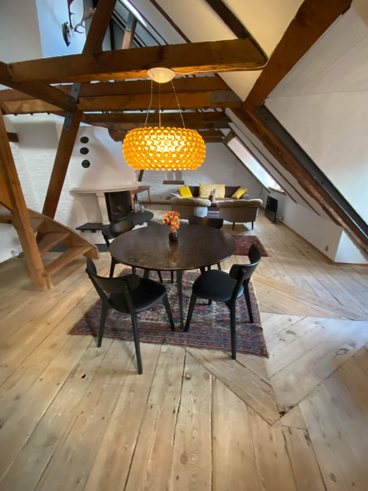 Mi apartamento está situado en el tercer piso de un edificio patrimonial de 300 años. Es importante tener en cuenta que no hay ascensor, lo cual es común, ya que menos del 9 por ciento de los edificios en el centro de Copenhague tienen ascensores. Ten esto en cuenta si tienes equipaje pesado. Mi apartamento recién reformado cuenta con un pasillo que conduce al baño y una sala de estar que se abre a la zona de dormitorio y cocina. Ofrece una acogedora (Hyggeligt) vista de los tejados de la ciudad.