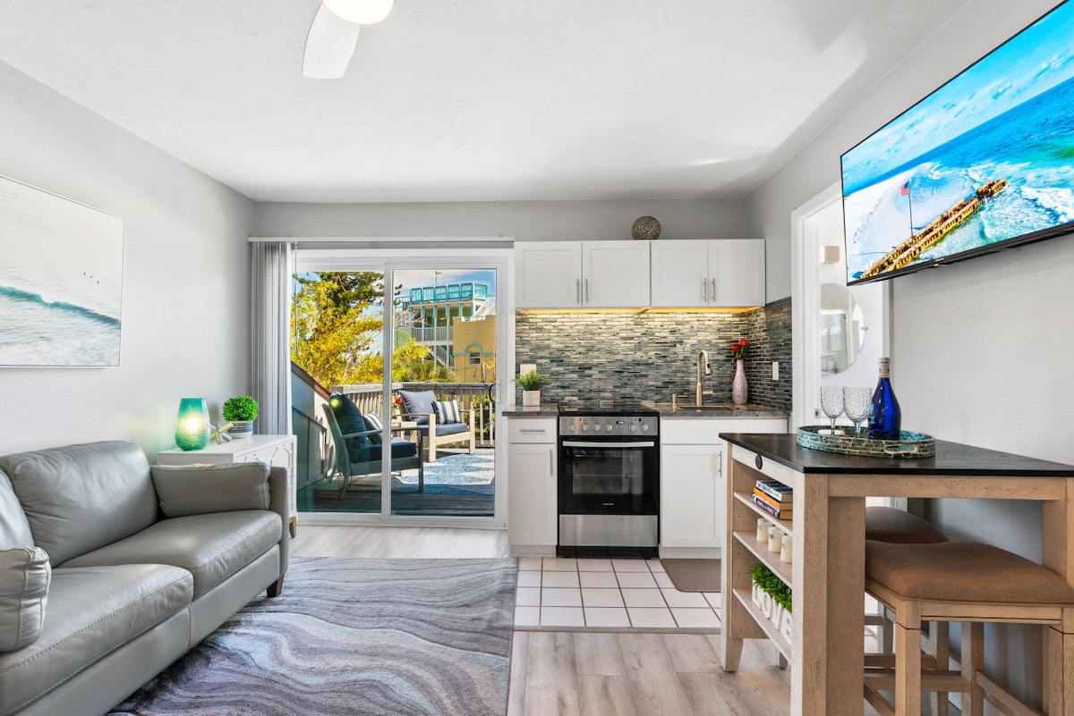 Bienvenido a la hermosa Siesta Key, ¡la playa número 1 del país! Hermoso condominio de un dormitorio recientemente renovado a 5 minutos a pie de la playa de arena blanca y atardeceres impresionantes. También al lado de restaurantes, bares, alquiler de kayak y motos acuáticas, ¡y mucho más! Contacto para alquileres mensuales disponibles. Experimenta este oasis moderno: • Sala de estar elegante • Encimeras de cocina de cuarzo. • Colchón tamaño king. • Equipo de playa. • Wi-Fi • Estacionamiento privado. • Televisores inteligentes • Terraza con mosquitero • Lavandería de monedas en las instalaciones.