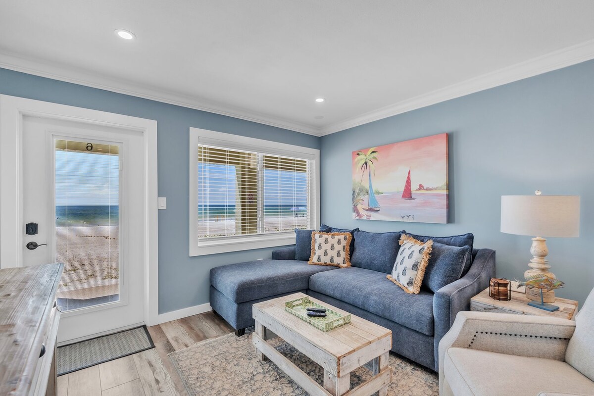 Solo tienes que bajar 14 escaleras desde tu condominio frente a la playa del segundo piso para tener los pies en la arena suave en polvo. Una cama queen size con un colchón suave en el dormitorio y un sofá cama tamaño queen en la sala de estar. Cocina completa en la unidad y lavandería disponible en la planta baja. Cable e Internet de alta velocidad incluidos. Una plaza de estacionamiento asignada. Disfruta de la puesta de sol desde tu balcón mientras se hunde en el Golfo. Perfecto para una escapada romántica en pareja o trae a los niños para una estancia divertida en la playa