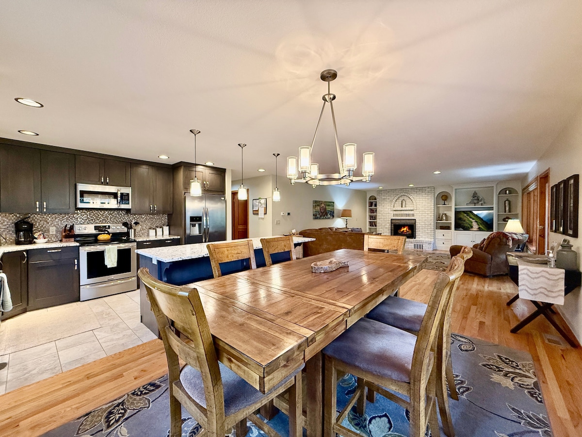 Relájate con toda la familia en esta tranquila casa de campo. Con una ubicación céntrica entre Whitefish Mountain Resort (a 15 minutos del autobús de nieve) y el Parque Nacional Glacier (a 15 minutos en coche). Tu familia puede tener todas las comodidades del hogar con una cocina completa, así como disfrutar del jacuzzi y la chimenea en el patio trasero privado y espacioso. Tres dormitorios y un baño con una preciosa ducha de azulejos. Estamos a poca distancia a pie del acceso al río Flathead y del sistema de senderos.