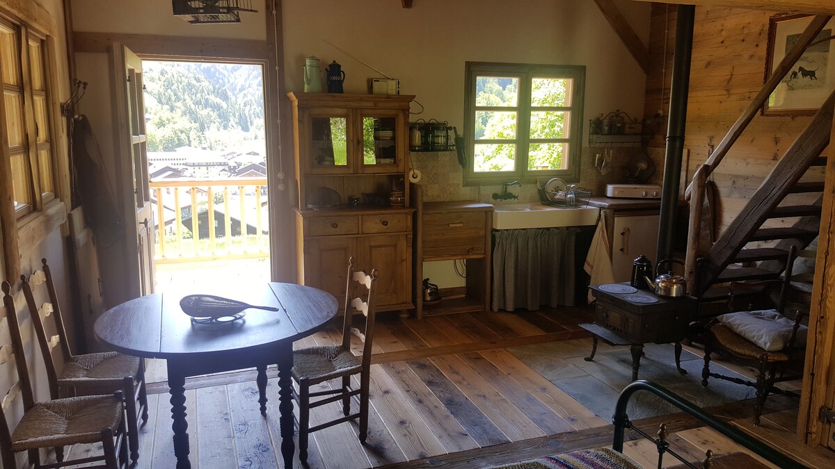 Encantador chalet antiguo de madera y piedra con vistas al Mont Blanc