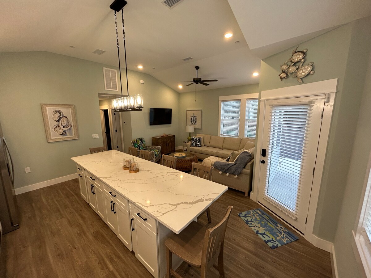 ¡Bienvenido! Una parte de todas las estancias se donan a la SPCA. En el corazón de los Outer Banks, cerca de la playa, sonido, restaurantes, tiendas y atracciones. Toda nuestra planta baja remodelada ofrece 2 HABITACIONES grandes: una ENORME con una cama tamaño queen con colchón Casper, sábanas, vestidor, armario y TV con Netflix; la otra es un comedor y escritorio con Keurig y cafetería completa. La cocina pequeña tiene nevera, doble placa calefactora, microondas, fregadero grande, lavadora/secadora, etc. También hay una zona de estar al aire libre y parrillas de carbón.