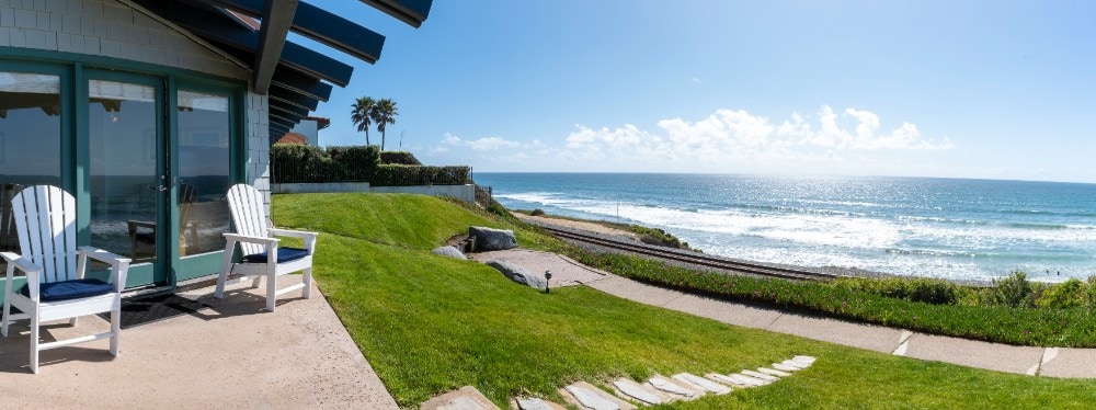 Comunidad frente a la playa con vistas al mar en Del Mar. Relájate con toda la familia, solo o con alguien especial. Situada en la hermosa y atemporal Del Mar, California, te encantará este lugar. La propiedad está a poca distancia de la playa, tiendas, los mejores restaurantes de San Diego, Del Mar Plaza y parques.