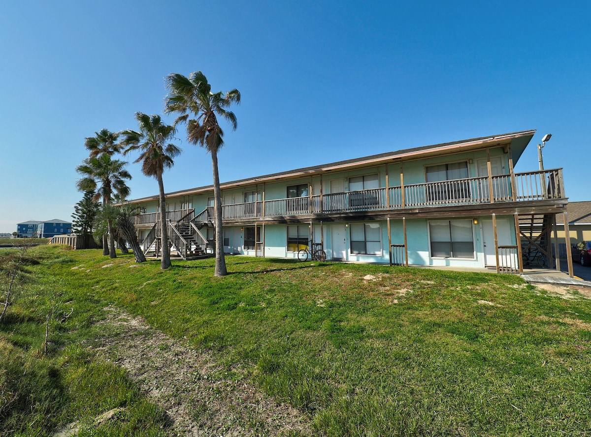 Te invitamos a North Beach, Corpus Christi, también conocida como "Birdiest City" a pasos de la playa. Vista a la ciudad y al golfo. Acceso a la playa, piscinas, lavandería, estacionamiento para vehículos recreativos, recepción las 24 horas (tarifa única de $ 20). SUP, kayak, kitesurf, pesca y observación de aves. Museo de arte, acuario y restaurantes cercanos. Surfistas: ¡el puerto A está a 30 minutos! *Estadía mínima de 2 noches * estadía con descuento semanal y mensual *Comunidad de 3-bldg; construcción en curso (por incendios y actualizaciones). La tarifa se reduce. La unidad está en el edificio.