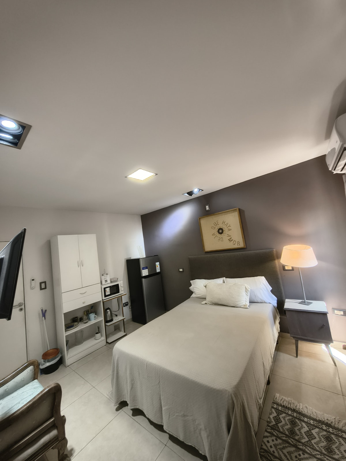 Bienvenido a este moderno monoambiente , diseñado para ofrecerte la máxima comodidad tanto si venís por negocios como por placer. Con mobiliario nuevo de alta calidad y una ubicación estratégica, este espacio es el refugio ideal en la ciudad. Equipado con una cómoda cama doble o la opción de configurar dos camas twin, adaptándonos a tus necesidades de viaje. Cocina Premium: Totalmente equipada con electrodomésticos modernos y vajilla , ideal para quienes disfrutan cocinar como en casa
