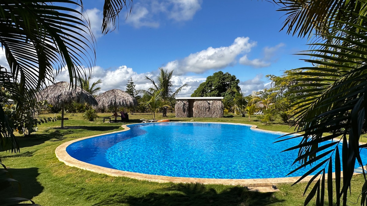 Cerca de Punta Cana, a 20 minutos de la playa y a 30 minutos del aeropuerto. El precio es para un bungalow doble. Hay 5 bungalows en la propiedad. Un espacioso rancho ecológico creado para el descanso, la libertad y la comodidad. Las estructuras de madera y los detalles naturales crean un ambiente cálido y auténtico en armonía con la naturaleza. Los bungalows de hojas de palmera, una gran piscina, área de barbacoa y espacios verdes te invitan a relajarte y a bajar el ritmo. Los huéspedes pueden disfrutar de un comedor, pedir comida, desayuno incluido.