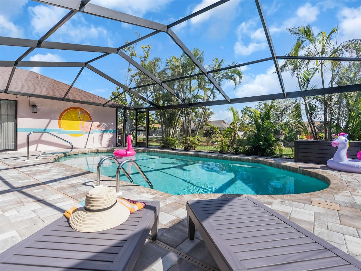 ¡Tu propio oasis tropical privado a pocos minutos de Anna Maria Island! 🌴 Relájate en la piscina climatizada, asa a la parrilla en la cocina cubierta al aire libre con TV de 58" o relájate con el sonido del arroyo. A las familias les encantan los juguetes, los juegos y el equipo de playa que se proporcionan. Con bicicletas, comedor al aire libre y un ambiente de barrio tranquilo, es el lugar perfecto para relajarse, recargar energías y crear recuerdos. 200 Palms está cerca de todo lo que quieres y lejos de tu vida cotidiana