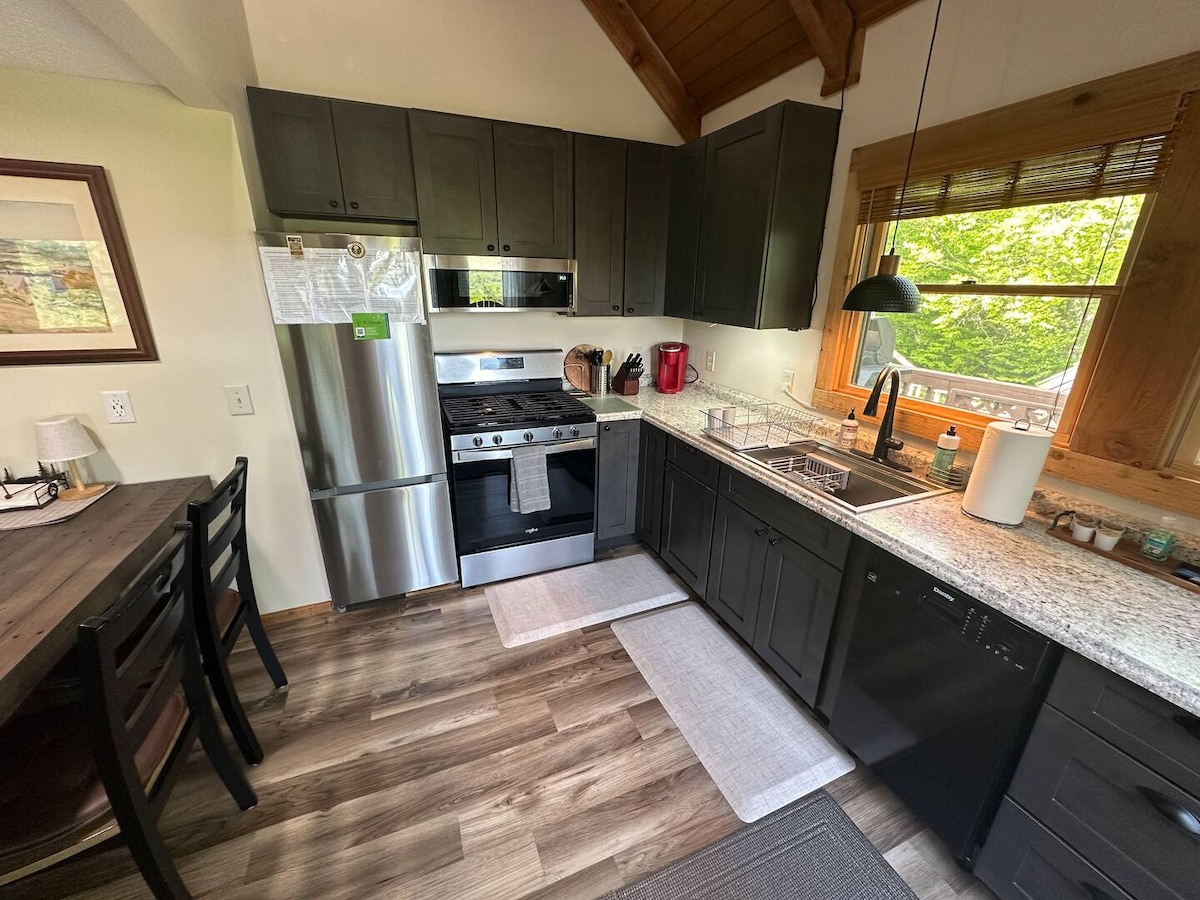 Cabaña renovada con todas las comodidades, incluido un porche *nuevo* con calentadores para todas las estaciones, una gran mesa de comedor y un columpio en el porche. Hornea una pizza en el horno de leña mientras tus hijos saltan en el trampolín o asan malvaviscos. Disfruta de caminatas en y alrededor de los Dolly Sods; en invierno, esquí, trineo o tubo; en verano, chapoteo, bote y balsa en ríos cercanos. Chimenea de gas. Wifi, cable, televisión inteligente, configuración de trabajo a distancia. Armario de juegos, suministros para fuertes y extras especiales para todas las edades.