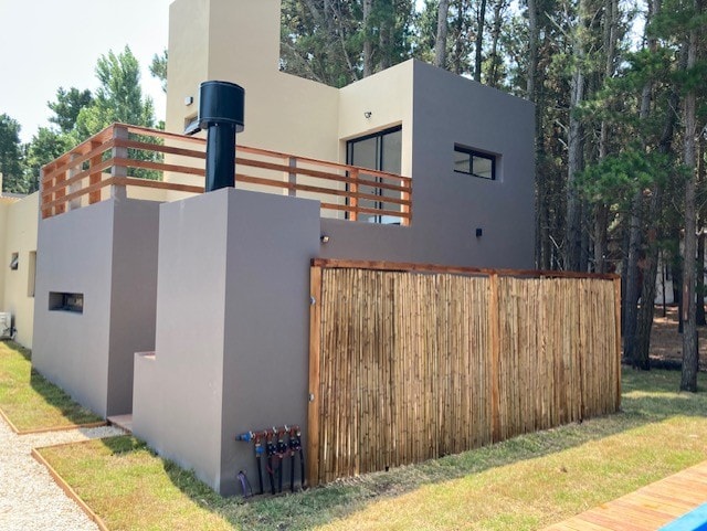 Casa de inspiración coreana Hanok, ideal para 4 personas con 2 dormitorios, 2 baños, living, cocina, una sala de té (convertible a dormitorio) y patio. Se ubica en la cima de una loma y rodeada por bosque, con mucha privacidad. Con grandes ventanas, es muy luminosa. Todas las aberturas tienen cortinas y mosquiteros. Cuenta con aire acondicionado y calefacción, una televisión smart, parrilla móvil y mesas y sillas exteriores. Ubicada en Costa Esmeralda, cuenta con canchas deportivas y gimnasio.