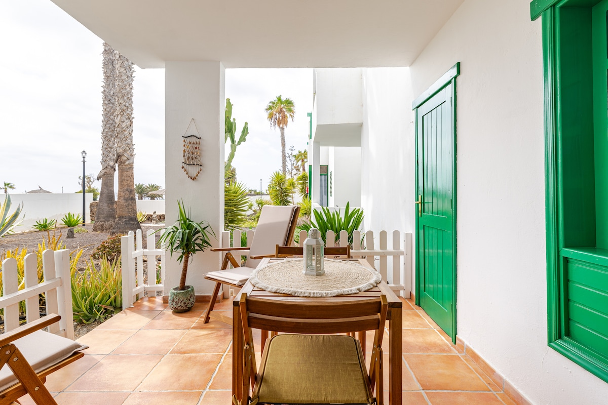 Exclusivo Bungalow Oasis con Terraza Privada, en precioso complejo con piscina, bar y acceso directo al paseo marítimo de Costa Teguise y sus playas: Bastián, El Ancla y El Jablillo. Espacio perfecto para relajarse tomando el sol, viendo las estrellas desde la terraza, o disfrutando del mar. Ubicado en el centro de Lanzarote, al lado de La Mareta (casa del rey D.Juan Carlos), perfecto para escapadas y rutas. Ubicada en exclusiva zona turística con todos los servicios de de ocio y transporte.