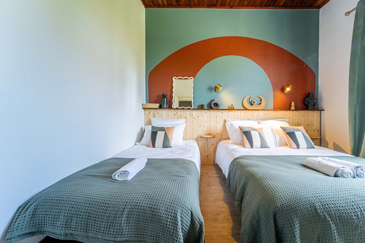 La Maison Manège le ofrece una suite diseñada para familias (2 habitaciones separadas con capacidad para 4 personas), con aire acondicionado de 44 m2 con un color azul dominante y una decoración panorámica de las montañas un barrio residencial del centro de la ciudad de Burdeos. Disfrutará de estar a un paso de la plaza Gambetta y de la famosa calle Sainte Catherine, del Auditorio y del Gran Teatro, de los cines y de muchos restaurantes de Burdeos. Dispondrá de un baño y un aseo privados. Las zonas comunes de nuestros 5 alojamientos son de libre acceso (cocina, salón y comedor). ¡Es el lugar ideal para visitar Burdeos sintiéndose como en casa!