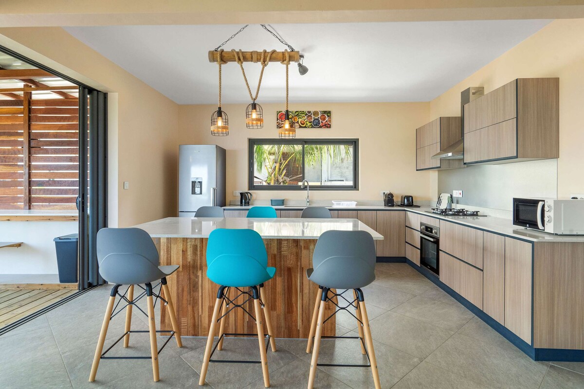 Despierta al suave murmullo de las olas en esta pintoresca casa con techo de paja, enclavada en la laguna de Roches Noires. Con su habitación doble encaramada arriba, disfrute de impresionantes vistas de las palmeras y la laguna. El jardín se extiende hasta una playa natural a pocos pasos de la terraza. No se necesita piscina: la laguna se convierte en su piscina natural La casa está equipada con todo lo necesario para una estadía cómoda.