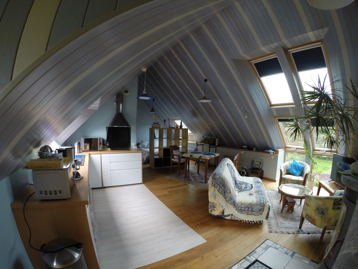 Alojamiento luminoso en buhardilla (a 500 m del mar)