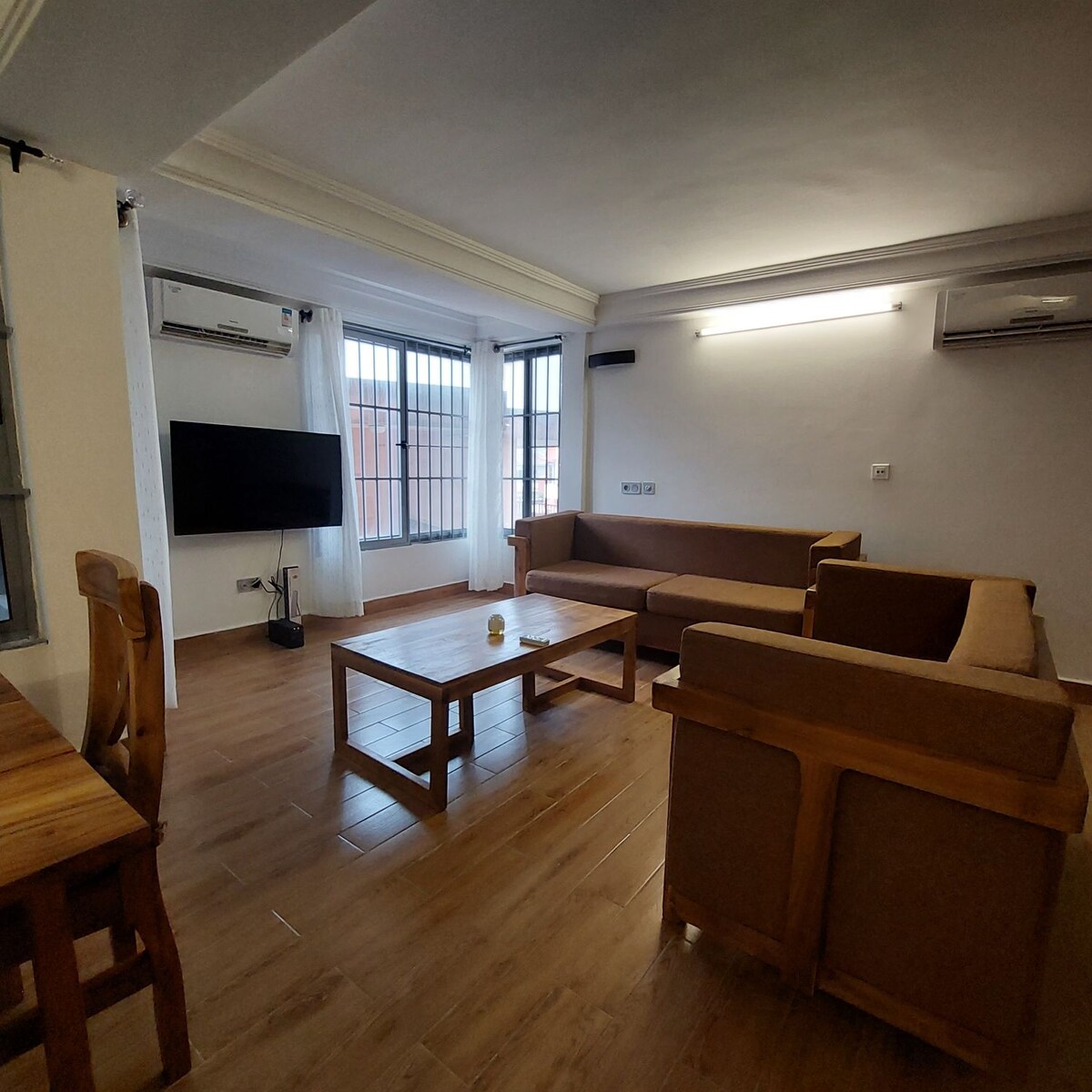 Apartamento amueblado totalmente climatizado con 1 dormitorio luminoso; situado en el 1.º piso de un edificio R+ 2 con - un baño equipado con calentador de agua - Cocina equipada con toda la vajilla - Conexión a Internet ilimitada con fibra óptica - Suscripción Canal + con canales internacionales - Un balcón en el primer piso con terraza con flores - Un guardia de seguridad - Limpieza una vez no semana - 15 kwh de electricidad gratis; más allá, usted pagará un suplemento por su estancia;