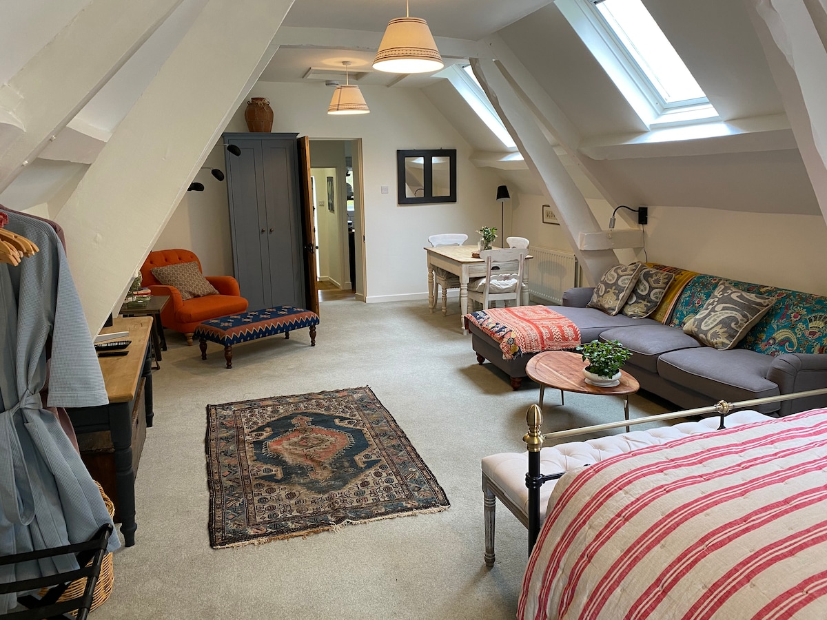 El loft forma parte de un gran complejo de graneros tradicionales de piedra de Cotswold, construidos como una granja modelo hace más de 200 años. Está situado encima de nuestro patio estable en el centro de una granja en funcionamiento. Por un lado, desde la ventana, probablemente verás caballos entrando a desayunar; el otro lado tiene vistas al campo de equitación y a las tierras de cultivo. No apto para bebés y niños menores de 12 años.