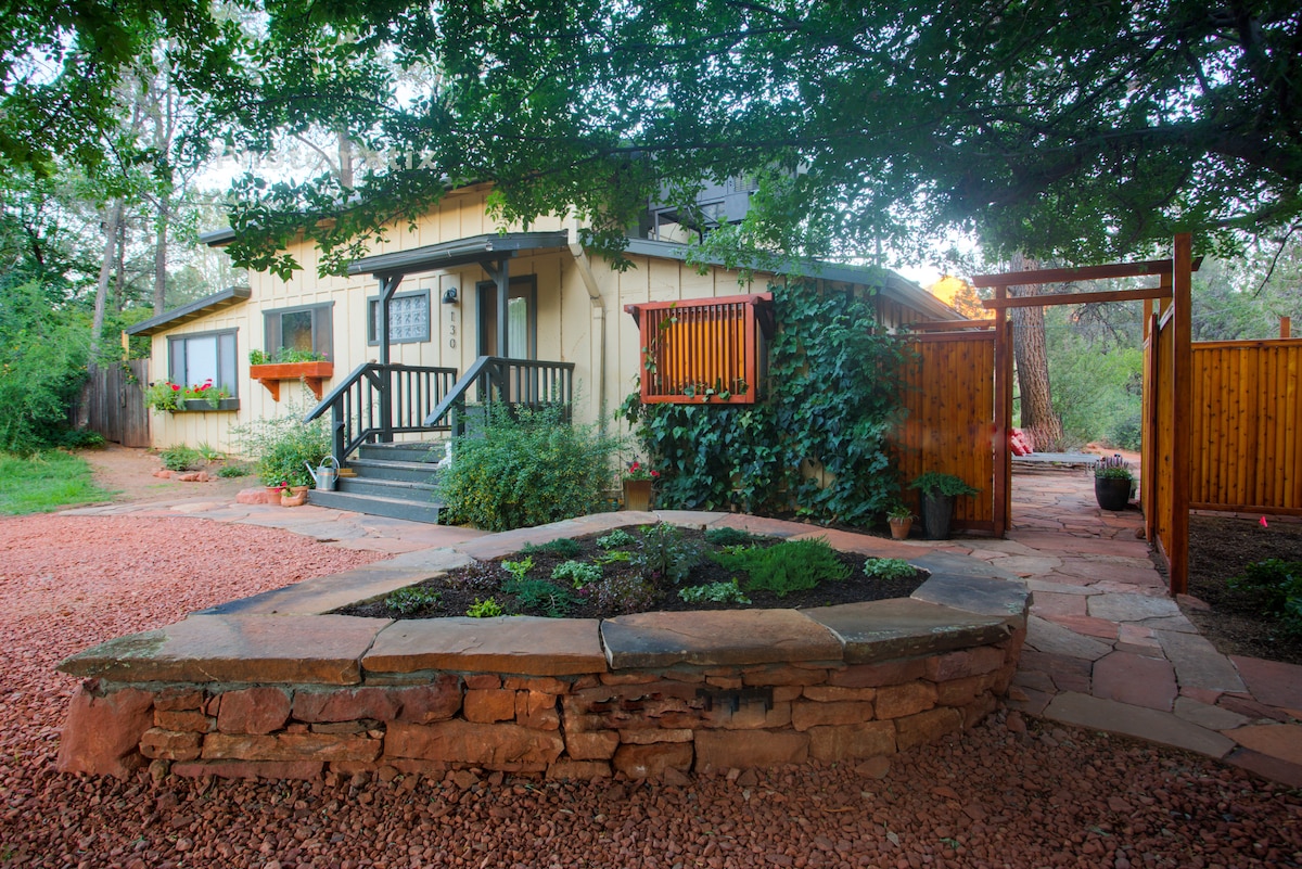 Siéntete como en casa en el corazón de Sedona, a poca distancia a pie de algunas de las mejores rutas de senderismo. Nuestra casa de huéspedes/estudio adjunta ofrece una amplia terraza privada, increíbles vistas a Red Rock y piscina de 24' (mayo-octubre). Disfruta de una cómoda cama tamaño king, una cocina pequeña (mininevera, microondas, placa de inducción, cafetera y mucho más), un televisor inteligente de pantalla plana, suelos de madera, baño adjunto con bañera, persianas opacas, una segunda ducha exterior (caliente), mesa de fuego exterior, barbacoa de gas y entrada y patio privados.