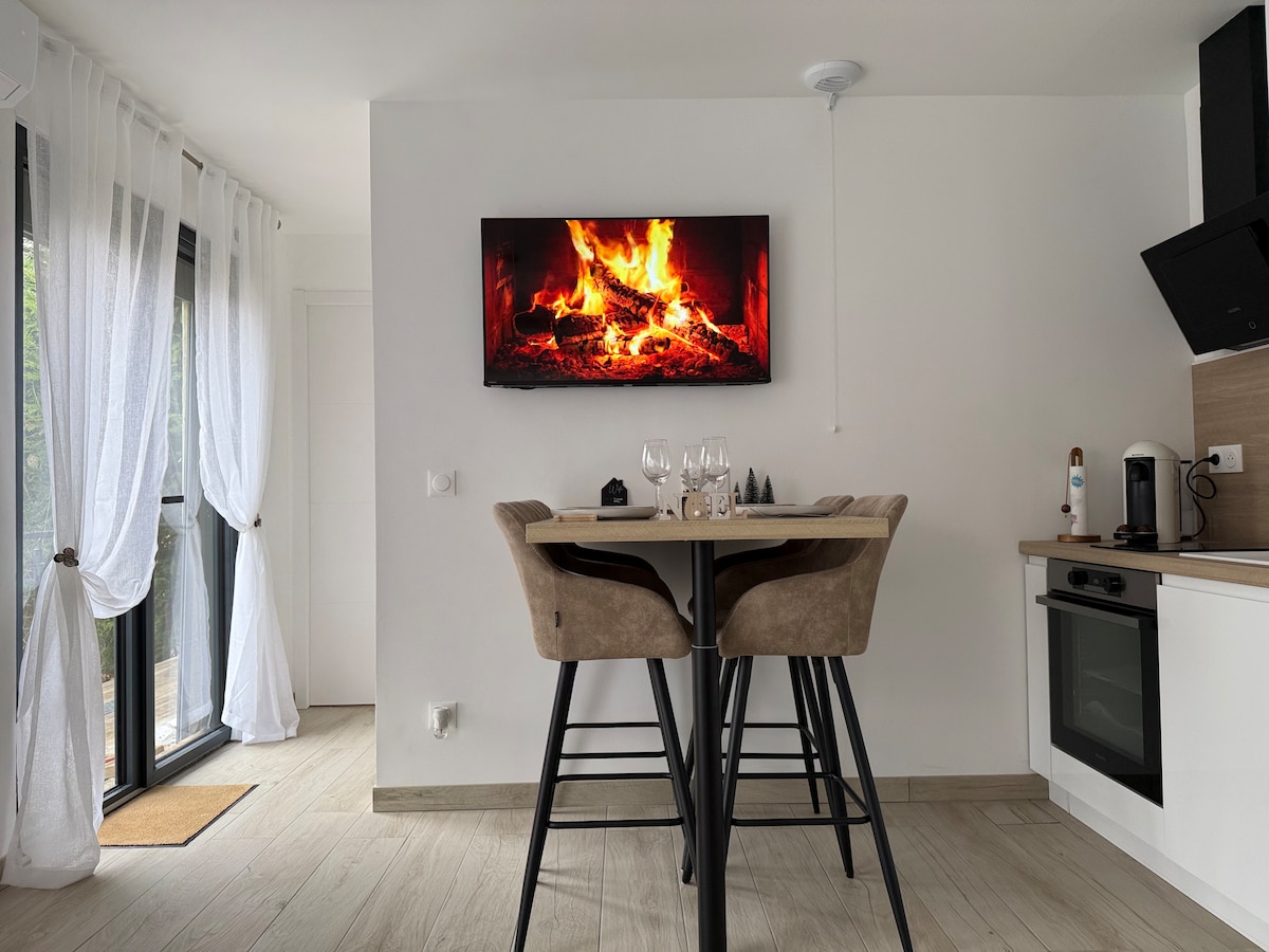Relájese en este alojamiento tranquilo y elegante. El estudio es independiente, cuenta con un baño y una cocina americana equipada con horno multifunción, nevera, placa de inducción de 2 fuegos, vajilla, cafetera, tostadora. La ropa de cama, toallas, jabón, productos de limpieza básicos están a su disposición. Tiene capacidad para 2 a 3 personas. Tiene acceso al patio directamente desde el estudio. El alojamiento se encuentra a 15 minutos de Disney.