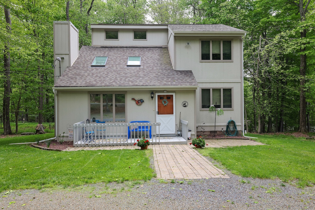 ¡Pregunta por las ofertas especiales de primavera entre semana! 🌸 Este espacioso y pequeño refugio está completamente abastecido para unas vacaciones familiares memorables o una escapada romántica en pareja. Sumérgete en tu jacuzzi privado, brinda con s'mores junto al fuego, balancéate en la hamaca bajo las estrellas o quédate y disfruta de horas de juego en nuestra nueva Nintendo Wii. Disfruta de acceso a 2 playas, una piscina olímpica (de temporada), minigolf, canchas de tenis y mucho más. A pocos minutos de los favoritos de Pocono, como esquí, casinos y parques acuáticos.