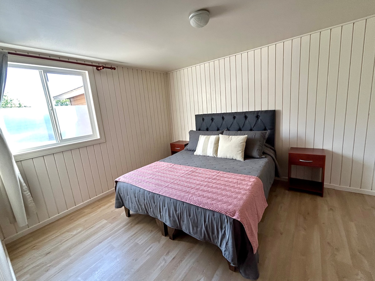Cabaña tipo Loft adosada a casa principal. Ubicación segura y céntrica a 6 cuadras de la plaza de armas, con negocios, restaurantes y locomoción cerca. El lugar cuenta con lo necesario para una estadía corta: Cama de dos plazas Microondas Secador de pelo Hervidor Calefactor Cocina a gas