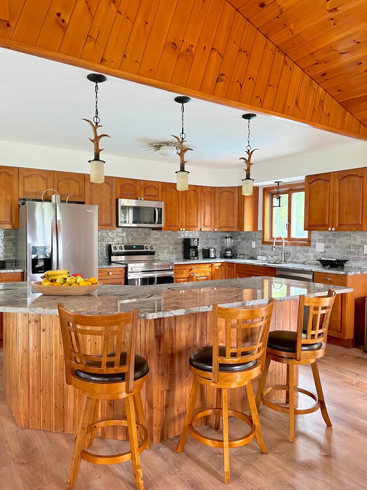 382 Back To Sodom Rd. WiFi, family-friendly activities and the beach. You’ll love my place because of the high ceilings, the location, the coziness, and the views. Built by a local craftsman with logs from our area and local river stone for the fireplace. Cabin is completely modernized. A lovely porch looking towards the pond and exterior lights along the Pond. Minutes to all outdoor activities. Pet fee $75 per pet must be paid at time of booking. Must bring dog blankets!