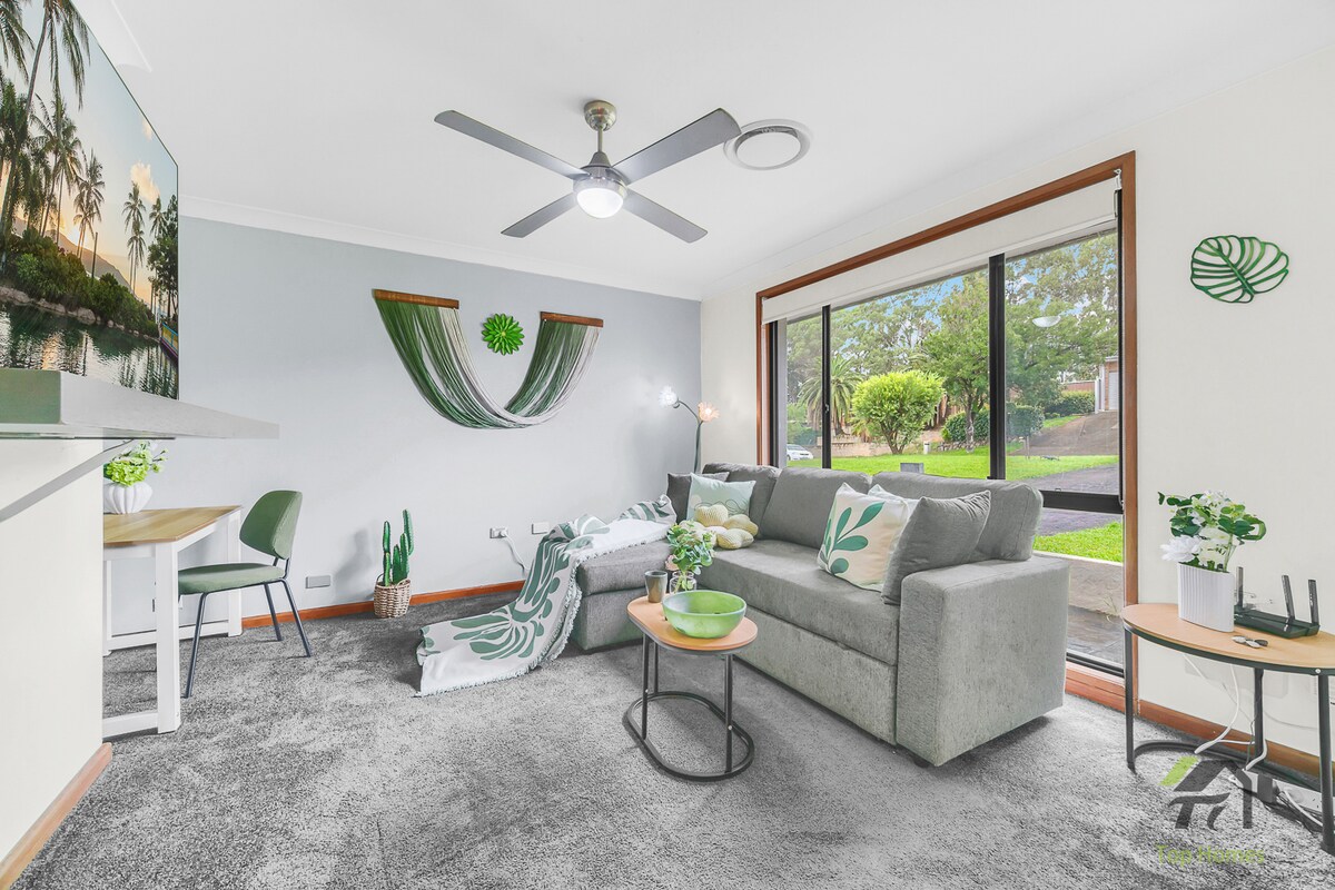 No 2 night minimum! Bonton Bliss is a great place to base yourself and discover the Blue Mountains. It is also great value for families and groups of 4. Private Fully self-contained, attached modern guest house with full kitchen, laundry, private bedroom, and built-in wardrobes. Fold out double sofa bed. Close to the Main Street of Springwood 1.5 km and The Hub. Private entrance. Bus stop at the top of the street 50m .It is an excellent location for bush walks 30 minutes to The 3 Sisters