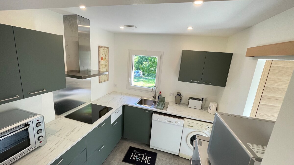 Relájese en este alojamiento único y tranquilo. La casa se encuentra en plena naturaleza y a 5 minutos del centro de la ciudad. También podrá disfrutar de la piscina privada o de los numerosos lugares turísticos de los alrededores. Dispondrá de 3 hermosas habitaciones equipadas con ropa de cama nueva y de calidad. La cocina está totalmente equipada y el comedor es luminoso. Un gran salón, un patio sombreado, varias terrazas y zonas ajardinadas completan este lugar ideal para irse de vacaciones.