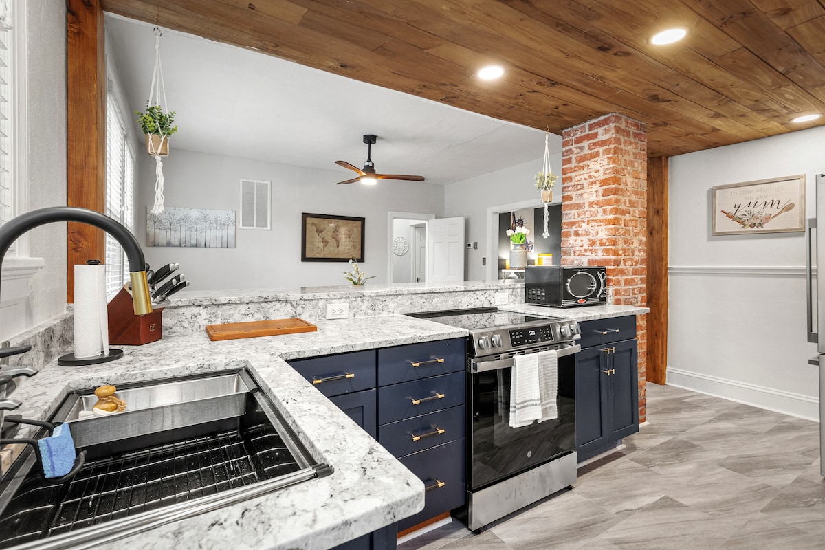 The Bricks es un moderno loft de lujo en el edificio más antiguo de Blackstone. Los ladrillos expuestos se colocaron en 1893. Con vistas a Main St. Disfruta de una cocina completa, hermosos suelos de madera originales, mesa de comedor de losa y una gran ducha de lujo para dos. Cómodas camas tamaño queen, sábanas suaves. Televisor inteligente grande con tus aplicaciones favoritas y wifi rápido gratuito. Café, té y artículos de aseo de lujo. Al otro lado de la calle hay un gastropub, The Brewhouse, con buena comida, ambiente divertido y buena cerveza. A poca distancia a pie de restaurantes, tiendas y cerca de Ft Barfoot.