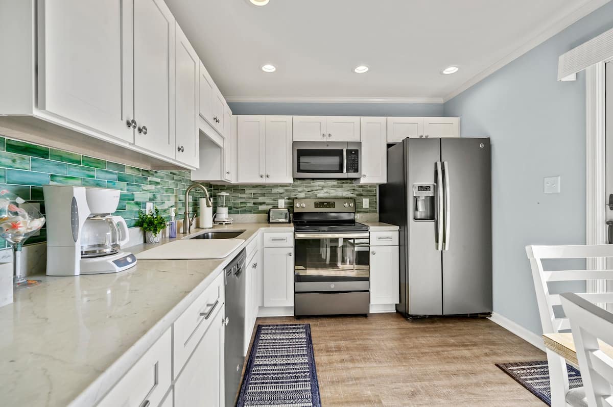 Welcome to Bayside Bliss, a stylish 2BR / 2BA top floor condo in Downtown OC. Relax in the oversized living room, stream your favorite shows and music to any of the smart tvs, or watch the sunset on the porch. The fully equipped kitchen, washer & dryer, and two full bathrooms will make your stay feel like home. Just a short walk to some of OC's best restaurants, nightlife, the boardwalk, and the beach. Steps away from the White Marlin Open weigh-ins and OC Air Show
