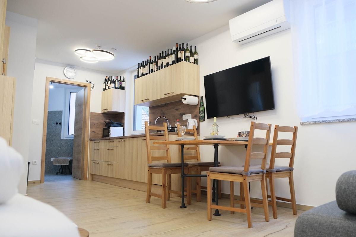 El estudio espacioso, luminoso y espacioso está ubicado en la planta baja de los tres apartamentos propiedad de nuestra familia. Tendrás tu propia entrada y estacionamiento privado gratuito. La casa se encuentra en el distrito de Šiška, a 3 kilómetros del centro de la ciudad, con la estación de autobuses en la calle. La cocina de madera de roble está totalmente equipada y el estudio tiene un baño espacioso, elegante y elegante. Puedes acceder a la terraza y al jardín a través de una gran pared panorámica de vidrio.