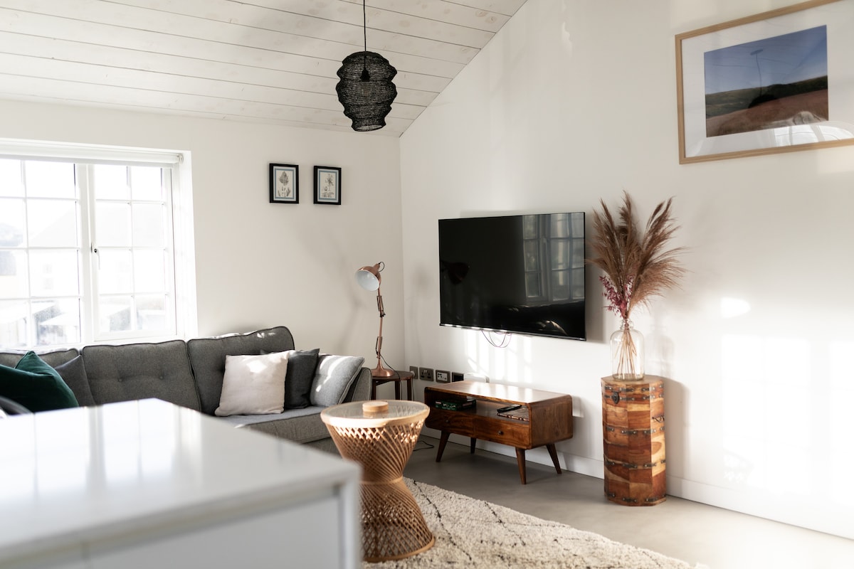 Board Room @ Green Rooms is a contemporary and spacious one bedroom apartment. 5 meter bi-fold doors from the living area open onto your own private South facing decked garden. A real suntrap with sun loungers and outdoor dining area to enjoy. A great nights sleep awaits you in the sumptuous super-king bed and in the morning roll back the huge sliding barn door to reveal the view of the sun coming up over Saunton Down right from your bed.