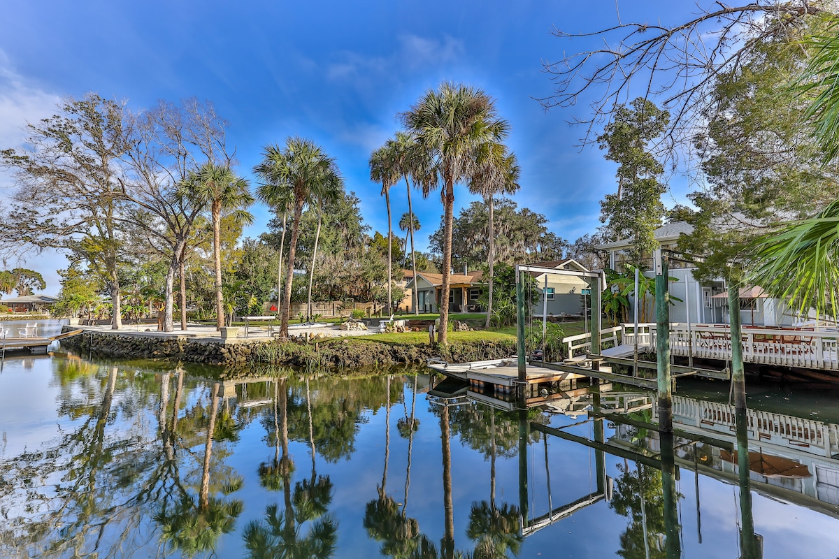 CASA 💦FRENTE AL MAR EN EL CANAL EN UNA UBICACIÓN PERFECTA. Utiliza nuestros KAYAKS para visitar los MANATÍES en 3 HERMANAS y todos los manantiales locales. 🔴 ¡BOAT SLIP for SCALLOPING! 🔴 BASTONES para pescar en el jardín. 🔴 1 hombre, 1 bicicleta femenina, mesa de fogata y parrilla. 🔵 RETIRO RETRO ÚNICO Refrigerador de estilo vintage en una cocina divertida de concepto abierto, tocadiscos/discos y un cómodo sofá. Estamos cerca de todo... ¡NADA ENTRE MANATÍES! KAYAK EN PRIMAVERA PESCA SCENIC/AIRBOATING SCALLOPING