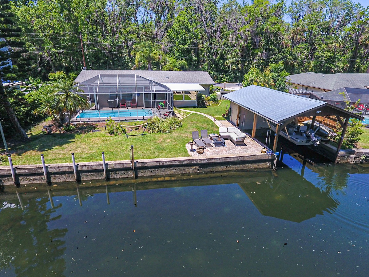 Trae a amigos y familiares a esta casa totalmente remodelada y decorada. Cuenta con una piscina protegida, varias chimeneas y un muelle flotante para amarrar tus barcos en un canal de aguas profundas con acceso directo al golfo y a los manantiales de las 3 Hermanas. Disfruta nadando con los manatíes, pescando vieiras, pescando en el golfo, haciendo kayak (2 incl.) y tubo por el río, o compra y come en el centro de Crystal River. La casa tiene más de 2300 pies cuadrados, 3 dormitorios/3 baños, lo que la convierte en una escapada cómoda para cualquier temporada y ocasión.