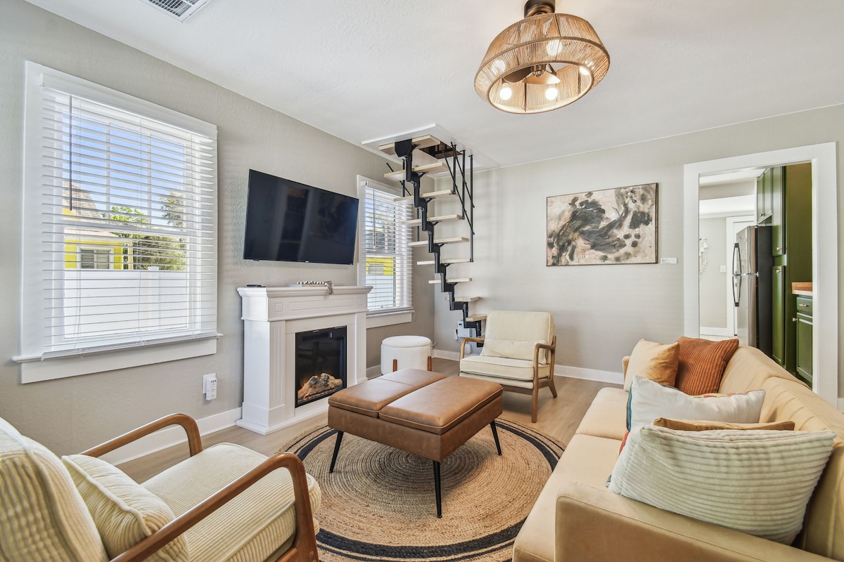 ¡Un alojamiento GoUppers! - ¡Sin comisiones de Airbnb! ¡Te damos la bienvenida a tu hogar perfecto lejos de casa! Este refugio de 2 dormitorios y 1 baño bellamente decorado tiene capacidad para 4 huéspedes con una lujosa cama tamaño king en el dormitorio principal. Disfruta de una cocina gourmet totalmente equipada con encimeras de piedra, perfectamente conectada a una acogedora sala de estar, perfecta para relajarse o entretenerse. El trabajo a distancia es fácil con un espacio de oficina dedicado y un Internet de alta velocidad.