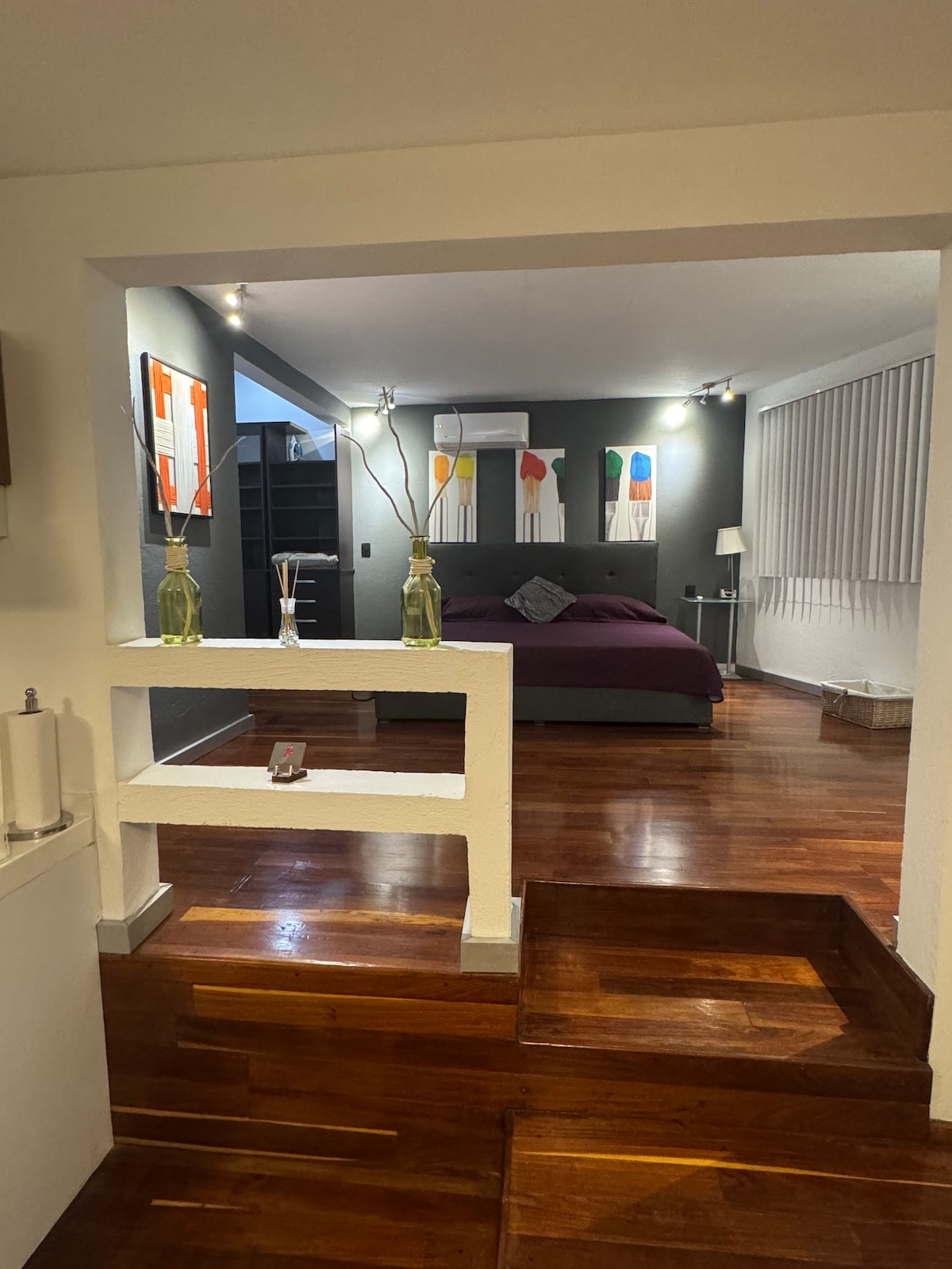 Enjoy the city in a unique and peaceful location in Roma Sur. Our loft, Xoxotic (green in Nahuatl), is located only a few blocks away from Condesa and Roma Norte, two of the “it” neighborhoods in the City, where you can find lovely cafés and bakeries, art galleries, indie boutiques, and some of the best restaurants in Latin America. The loft is on the second floor and there is no elevator, so you have to use stairs to get there.