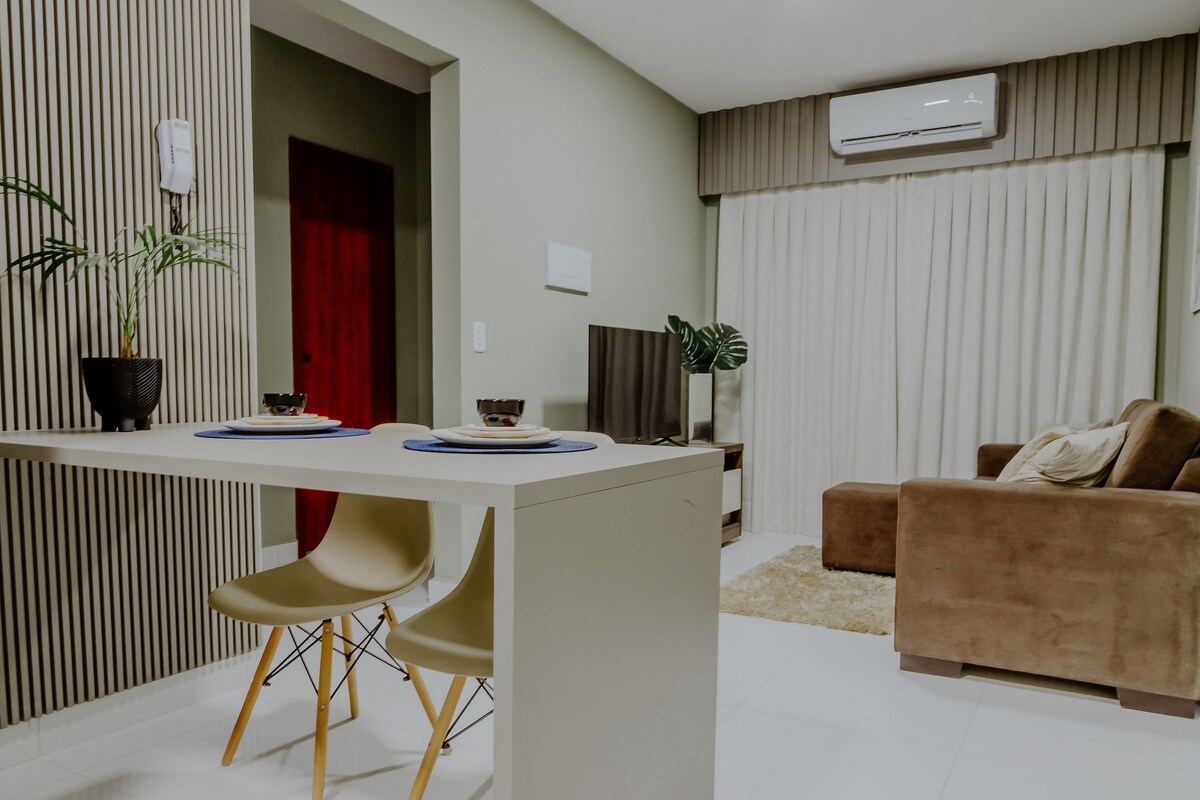 ¡Relájate con toda la familia en este tranquilo y elegante alojamiento de dos dormitorios! Excelente ubicación en el centro político administrativo, junto al Parque dasguas, salida a Chapada dos Guimarães, junto al centro comercial pantanal, farmacia. Mercado, salón de belleza y restaurante frente al condominio. Un espacio bien ubicado y único. Para confirmar el check-in, se requieren los detalles completos de todos los huéspedes (nombre completo y documento).