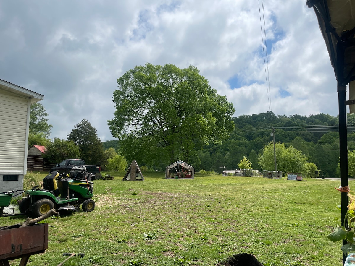 Ven a alojarte en nuestra tienda de campaña glamping hecha a mano, construida con carpintería tradicional de madera y envuelta en la belleza y el capricho de la lona de algodón transpirable. Inspira. Acércate. Relájate. Observa la niebla matutina a través del valle desde tu porche delantero. Toma una siesta mientras la luz del sol baila sobre el lienzo. Sumérgete en los sonidos del canto de los pájaros y la brisa mientras lees un buen libro. Aventuras cercanas: 15 minutos – Parque de Indian Mtn. 40 min – Lago Norris 45 min – Cascadas de Cumberland 2 horas – Parque Nacional de las Grandes Montañas Humeantes