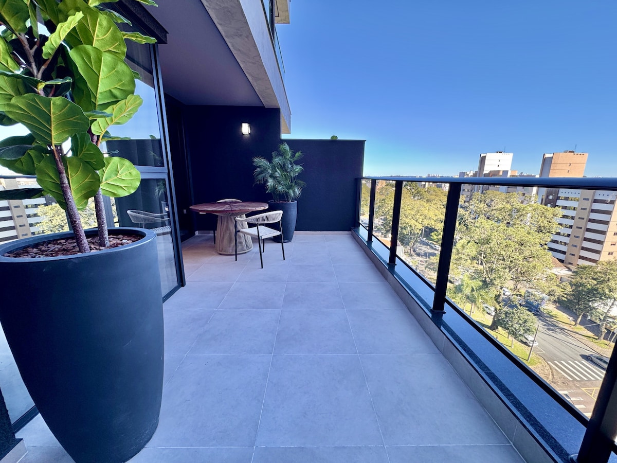 El departamento es NUEVO y de la más alta calidad. Es uno de los más nobles de Curitiba, con espacio, ventilación, gran iluminación y ubicación residencial. Se encuentra en el piso 12, con vistas a la puesta de sol de la ciudad. Hay 03 cuadras del jardín botánico. Tiene capacidad para hasta 06 personas, tiene 01 suite con balcón, además de 02 dormitorios dobles, comedor y salas de estar con balcón con barbacoa, aire acondicionado, sonido ambiental, purificador de agua, cafetera espresso. Ropa de cama y toallas Buddemeyer.