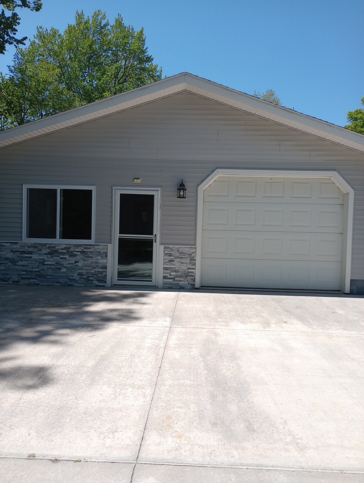 A fixer-upper. The house is ready now with some ongoing projects. The house is one bedroom on top of a two-car garage so being able to climb steps is a must to enter the living space. The house is located in town. Less than a 5-minute stroll to the lake passing a coffee and ice cream shop, a consignment shop, an art gallery, etc. This is a great place to stay for the Harbor Town Weekend in September. Great for the business traveler for Alcona County. Hope to see you soon.