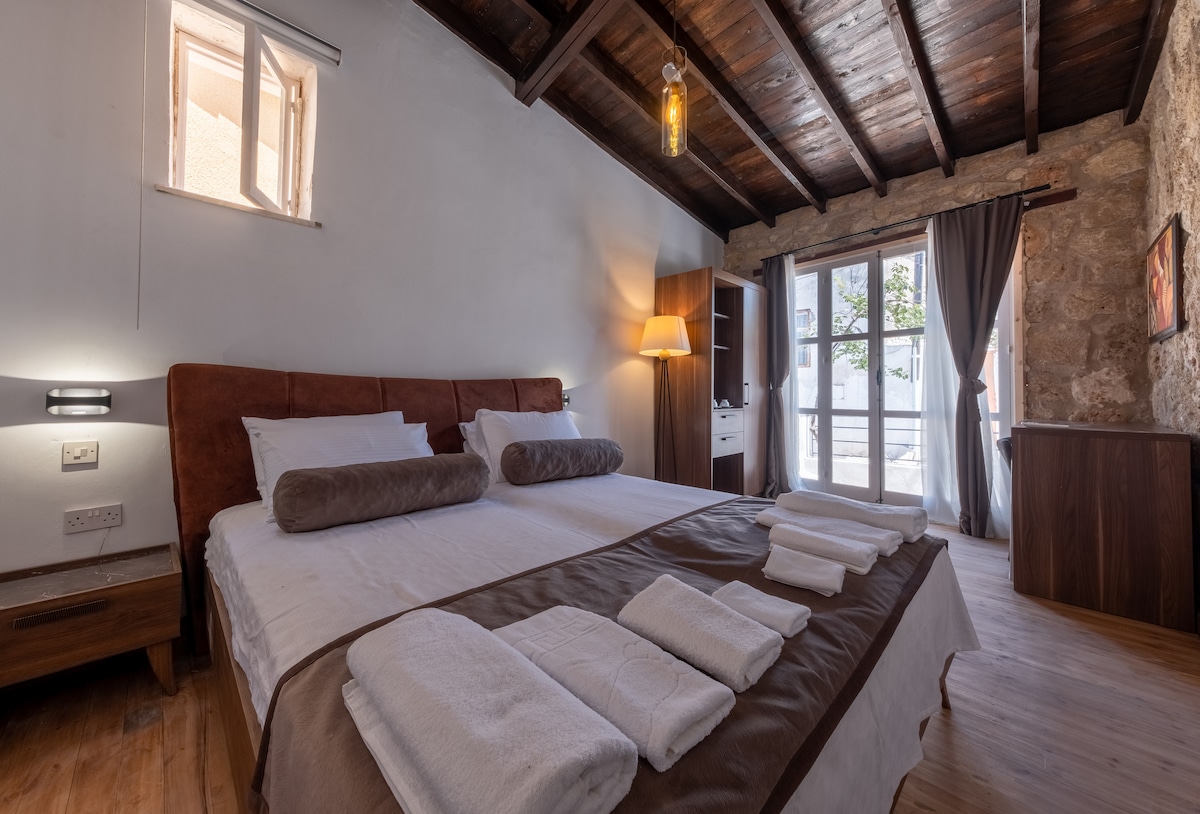 La habitación está enclavada en las faldas de las montañas de Kyrenia, con vistas a un viñedo local. Las habitaciones tienen acceso a pequeños jardines frente a ellas y la propiedad cuenta con una piscina infinita. Ofrece aire acondicionado y habitaciones independientes con wifi gratuito y balcones con vistas al mar Mediterráneo. La habitación tiene una cama doble y un baño privado. Cuenta con una pequeña cocina con nevera, fogones, hervidor de agua y tostadora. TV vía satélite, NETFLIX e incluye una zona de estar para desayunar, almorzar o cenar.