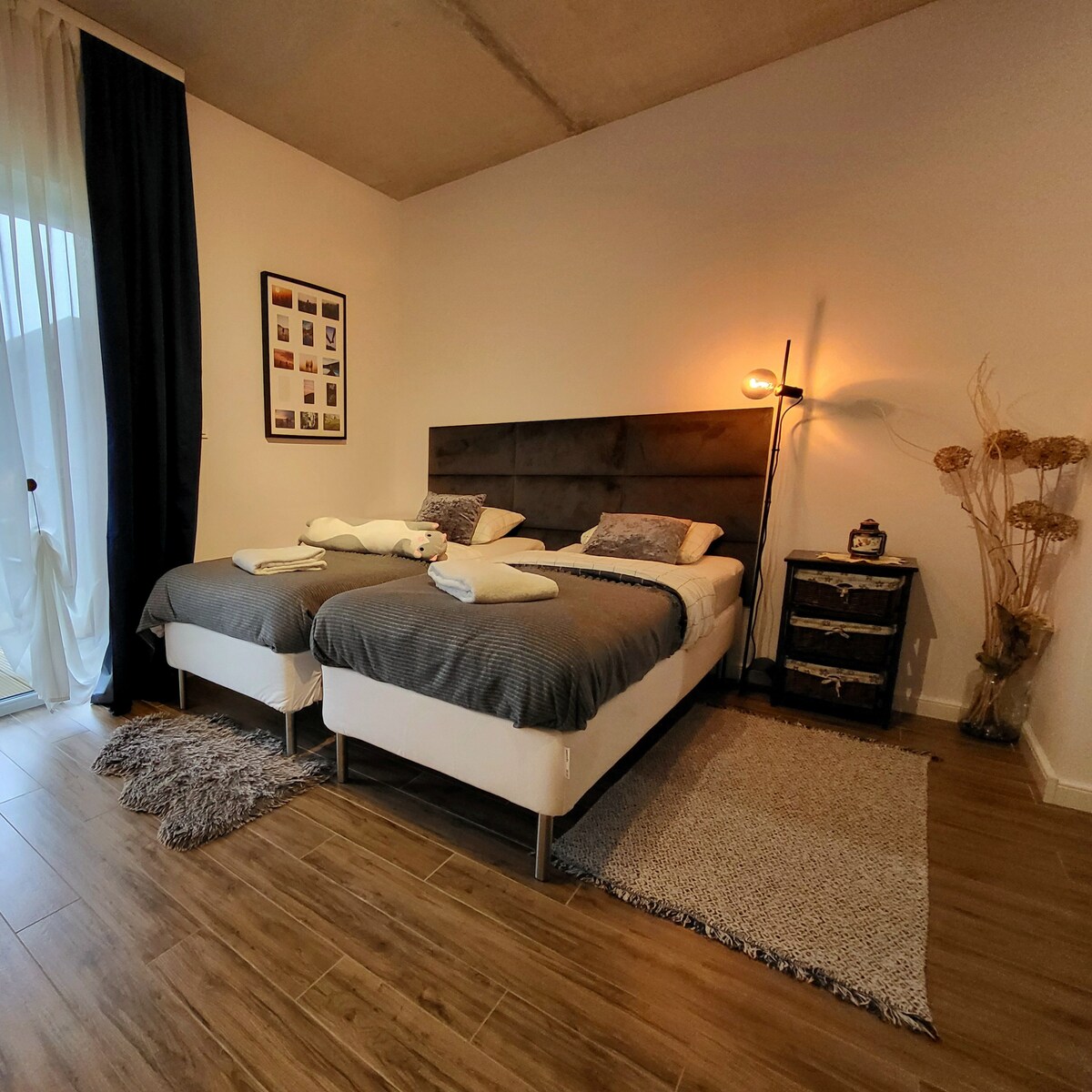Nuevo apartamento de 44 m2 con una gran terraza de 140 m2, planta baja. El departamento está totalmente equipado. Llegada autónoma :) El departamento se encuentra en el centro - Arena Prezero - 1 km - Universidad Tecnológica - 0,5 km. - Plaza del Mercado - 1 km - Kaufland -0,2 km Lugares para dormir - dormitorio una cama grande 160 cm - sala de estar con sofá esquinero grande con función de dormir + dos camas individuales - Posibilidad de agregar un espacio de trabajo. Internet, TV inteligente de 70 pulgadas Te invito cordialmente, la paz y la comodidad te esperan :)